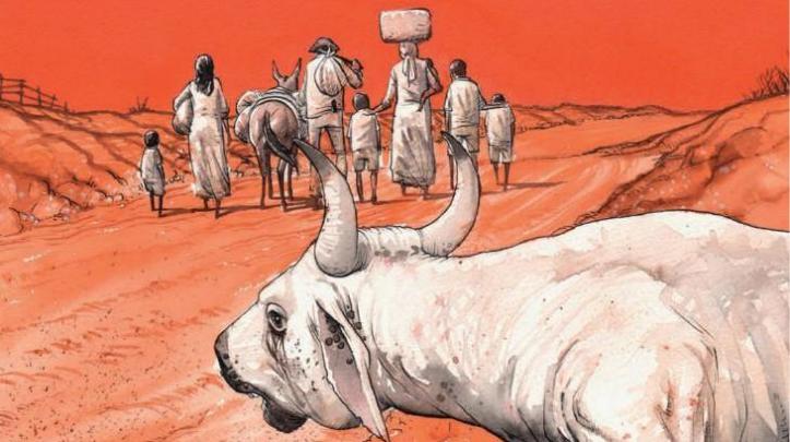 II. As imagens da terra assolada pela seca constituem um retrato das condições adversas a que estão sujeitos os habitantes daquela região.