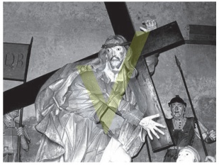 V – O queixo é sutilmente retangular, o que confere altivez à imagem esculpida.