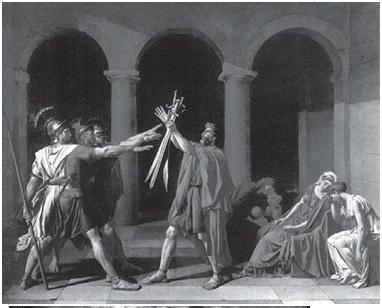 O Iluminismo apostava no uso da razão para a construção de uma nova ordem sociopolítica e, dessa maneira, recuperou os valores da cultura racionalista greco-romana. No campo das artes, esse procedimento resultou no neoclassicismo, que teve em Jacques-Louis David (1748-1825) um dos seus principais expoentes. Em O juramento dos Horácios (1785), David inspirou-se nos lendários irmãos Horácios, os três campeões de Roma que juraram lutar até a morte contra os Curiácios, os campeões da cidade de Alba, inimiga dos romanos.