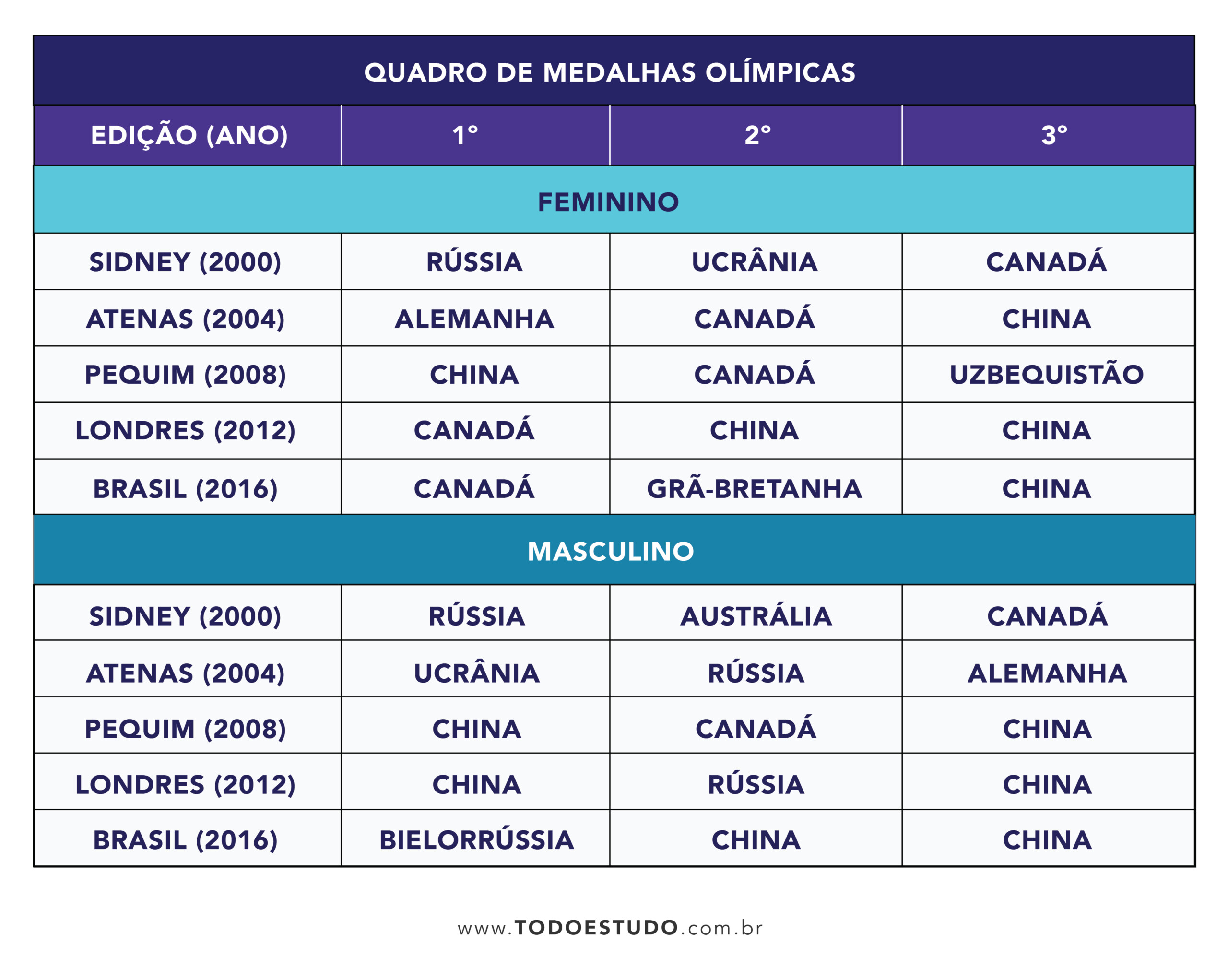 - Os primeiros ouros olímpicos da modalidade foram conquistados pelos russos Irina Karavaeva e Alexander Moskalenko, na edição de Sidney 2000.