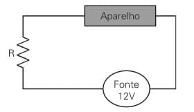 Um aparelho que continha as seguintes especificações de trabalho: entrada 9V – 500 mA. A única fonte de para ligar o aparelho era de 12 V. Um cidadão fez a seguinte ligação para não danificar o aparelho ligado à fonte: