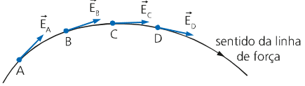 As linhas de forças são linhas imaginárias que tangenciam os vetores campo elétrico em cada ponto e são orientadas no sentido desses vetores.