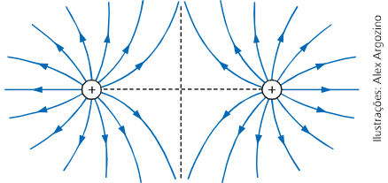 Duas cargas positivas de mesmo módulo: no ponto médio do segmento de reta que liga às duas cargas, o campo elétrico é nulo;