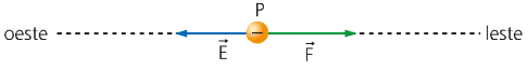 Como os vetores campo elétrico e da força elétrica são opostos entre si (sentido contrário) e estão na direção horizontal, então podemos concluir que a carga elétrica é negativa.