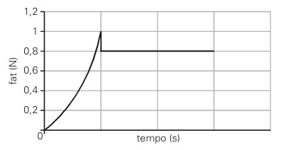 O gráfico a seguir representa a força de atrito (fat) entre um cubo de borracha de 100 g e uma superfície horizontal de concreto, quando uma força externa é aplicada ao cubo de borracha.