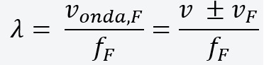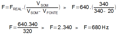 Segundo a equação do comprimento de onda (λ=velocidade/frequência), podemos relacionar a frequência percebida pelo observador (fo) com a frequência real emitida pela fonte (fF).