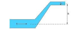 Água escoa em uma tubulação, onde a região 2 situa-se a uma altura h acima da região 1, conforme figura a seguir. É correto afirmar que: