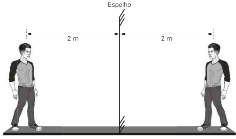 O espelho se afastou do homem em 3 m. Dessa forma, a imagem se afasta 6 m em relação à imagem original.