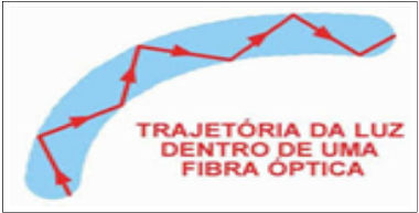 Ao entrar na fibra óptica, a luz sofre mudança de meio de propagação, o que caracteriza o fenômeno da refração. A propagação da luz na fibra só é possível graças ao fenômeno da reflexão total.