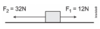 A segunda lei de Newton afirma que o módulo da aceleração adquirida por um corpo é proporcional à intensidade da força resultante sobre ele e inversamente proporcional à sua massa. Assim, observando a figura abaixo e admitindo que a superfície seja horizontal, a aceleração da caixa retangular, sabendo queu sua massa é 2,5kg e as forças F1 e F2 são horizontais e opostas, em m/s² é igual a: