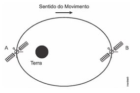 Os pontos A e B pertencem à trajetória do satélite, sendo que a distância da Terra ao ponto A é menor do que a distância do planeta ao ponto B.