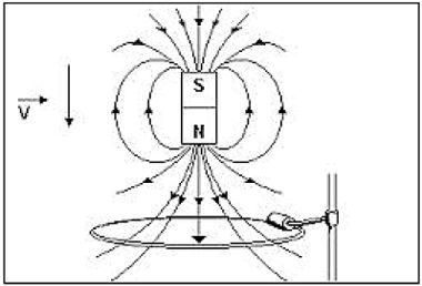 De acordo com a Lei de Faraday-Lenz, a corrente deveria girar no sentido anti-horário de modo a produzir um campo magnético vertical e ascendente, que se oporia ao campo magnético do ímã e causaria repulsão entre os materiais.