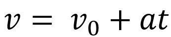Na equação acima, temos que v é a velocidade final, v0 é a velocidade inicial, a é a aceleração e t o tempo em que o objeto realizou o movimento.