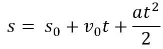 Neste caso, temos que s é o espaço total percorrido, s0 é o espaço inicial, ou seja, de onde o objeto saiu, v0 é a velocidade inicial, a é a aceleração e t o tempo do movimento.