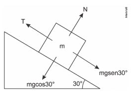 Nesse caso, a força de tração (T) é igual ao peso do corpo em x (mg sen30°).