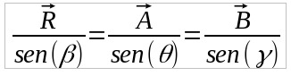 A lei dos senos é muito utilizada no estudo da estática do ponto material ou quando não se conhece a intensidade de um dos vetores somados.