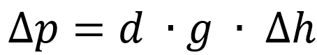 A diferença entre as pressões (Llp) de dois pontos, em um fluido em equilíbrio, é calculada pelo produto entre a densidade do fluido, a aceleração gravitacional e o desnível (Llh) entre as profundidades dos pontos: