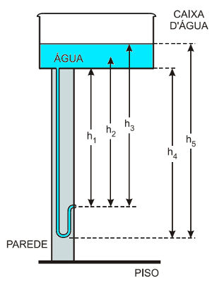 O manual que acompanha uma ducha higiênica informa que a pressão mínima da água para o seu funcionamento apropriado é de 20 kPa. A figura mostra a instalação hidráulica com a caixa d’água e o cano ao qual deve ser conectada a ducha.