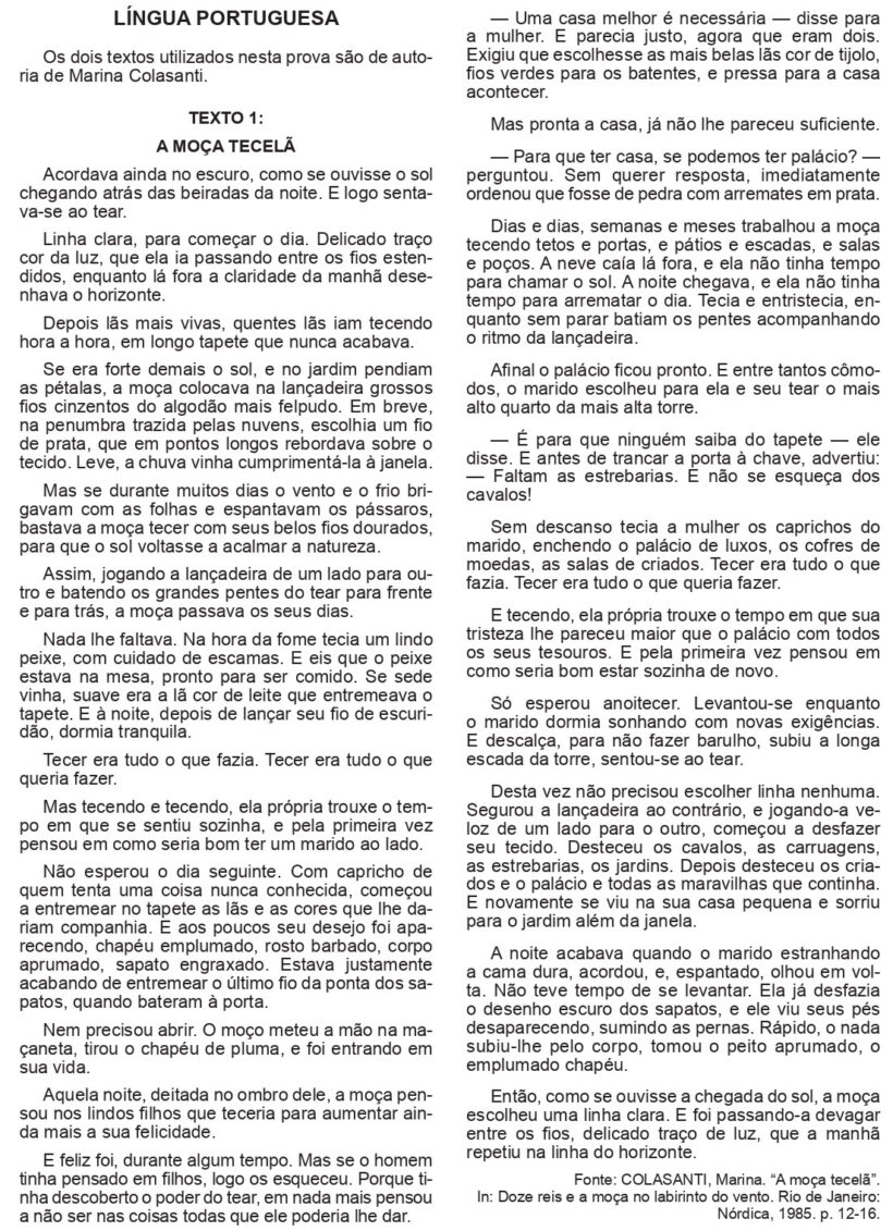Justificativa: as vontades do marido mudaram completamente a vida da tecelã e seus sentimentos.