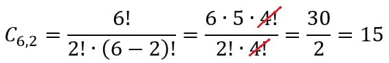 Para entender essa fórmula, vamos utilizar o exemplo anterior. Nesse caso, temos que p=2, pois é a quantidade de elementos possíveis, do subconjunto de frutas escolhidas, para se fazer a vitamina. Além disso, n=6, pois é o número total de frutas disponíveis. Aplicando esses números na fórmula, teremos o seguinte resultado: