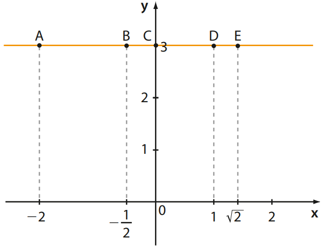 Se tivermos que a=0 e b≠0, a função afim se torna uma função constante. Um exemplo disso pode ser visto no gráfico a seguir, onde temos que f(x) = 3.