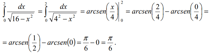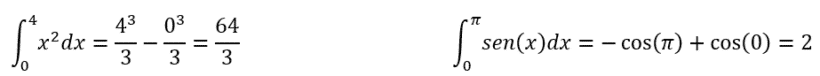 Nos exemplos acima, foi utilizada a forma da integral de polinômio e da integral do seno. Para resolver, substituímos os valores dos limites superiores e inferiores no resultado da integral. Em seguida, fazemos o resultado do limite superior menos o resultado do limite inferior.