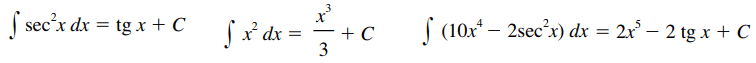 Serão mostrados, a seguir, alguns exemplos para que você possa compreender como se calcula uma integral definida a partir da tabela de integrais.