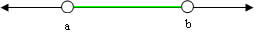 Intervalo aberto em a e aberto em b: ]a, b[, sendo que {xЄR/a < x < b} é representado por: