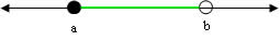 Em imagem uma bolinha preenchida • representa um intervalo fechado, enquanto uma bolinha vazada ◦ representa um intervalo aberto.