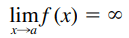 Em outras palavras, podemos dizer que os valores de f(x) tendem a serem cada vez maiores à medida que x se torna cada vez mais próximo de a. Podemos mostrar os limites infinitos de uma maneira mais formal a seguir.