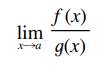 De uma forma geral, se tivermos o limite da figura a seguir em que f(x) e g(x) tendem a zero quando x tende para a. Então, o limite é indeterminado do tipo 0/0.
