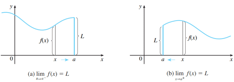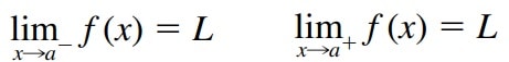 A primeira forma se refere ao limite tomado pela esquerda, ou seja, quando x é menor do que a. A segunda forma se refere para limites à direita. Em outras palavras, quando x tende ao a e x é maior do que a. Uma forma mais pode ser vista a seguir.