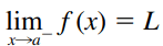e dizemos que o limite à esquerda de f(x) quando x tende ao a [ou o limite de f(x) quando x tende ao a pela esquerda] é igual ao L se pudermos tornar os valores de f(x) arbitrariamente próximos de L, para x suficientemente próximo de a e x menor que a.