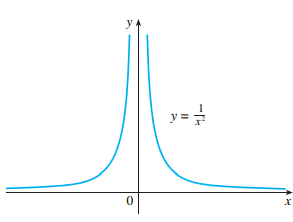 Vamos usar a função f(x) = 1/x² como exemplo, conforme o gráfico anterior. Para valores de x suficientemente perto de zero obteremos valores grandes para f(x). Faça você mesmo em casa e verifique para x = ±1, x = ±0,5, x = ±0,2, x = ±0,05, x = ±0,01 e x = ±0,001. Assim, os valores de f(x) não tendem a um número. Portanto, não existe limite para f(x) = 1/x².
