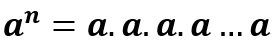 - a: base da potenciação (número que está sendo multiplicado por ele mesmo);