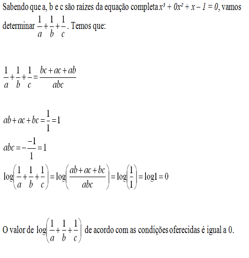 Diante disso, temos que a soma entre as raízes seria dada por: