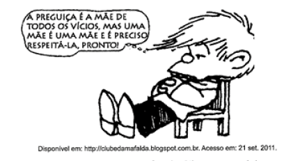 Justificativa: a primeira oração transmite a ideia de que a preguiça é algo negativo (um vício a ser evitado). Entretanto, a segunda oração transmite uma ideia diferente, que quebra a expectativa ao indicar que é preciso respeitar a preguiça pelo fato de ela ser considerada uma “mãe”.