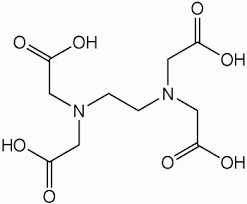 O ácido etilenodiaminotetracético, conhecido como EDTA, utilizado como antioxidante em margarinas, de fórmula