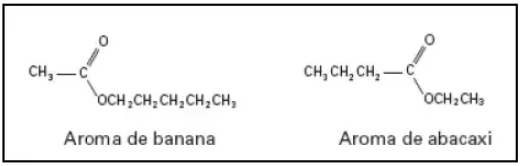 • Butanoato de etila: é o flavorizante usado para dar sabor de morango, abacaxi ou banana em alimentos e bebidas;