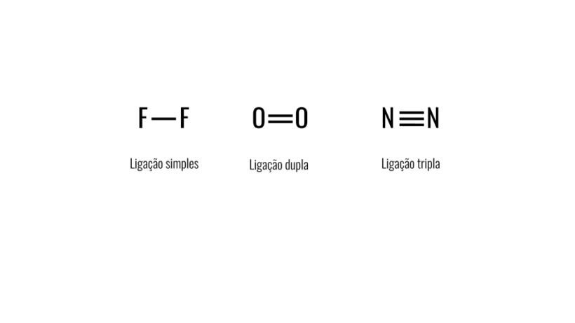 Você acabou de conhecer os tipos de ligações covalentes. Como visto, elas se tornam mais fortes gradualmente, isto é, da simples à tripla. No próximo tópico, veja como representar cada ligação.