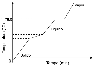 A curva de aquecimento, representada no gráfico, mostra a variação de temperatura em função do tempo de uma amostra de álcool vendida em supermercado.